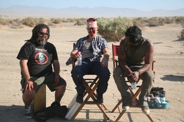 • The Rise of Reeker shot for 18 days in the dead of summer, near Death Valley. Daytime temps reached 115 degrees. Considering all the fire gags, the producers introduced the actors and crew to a new level of masochism.